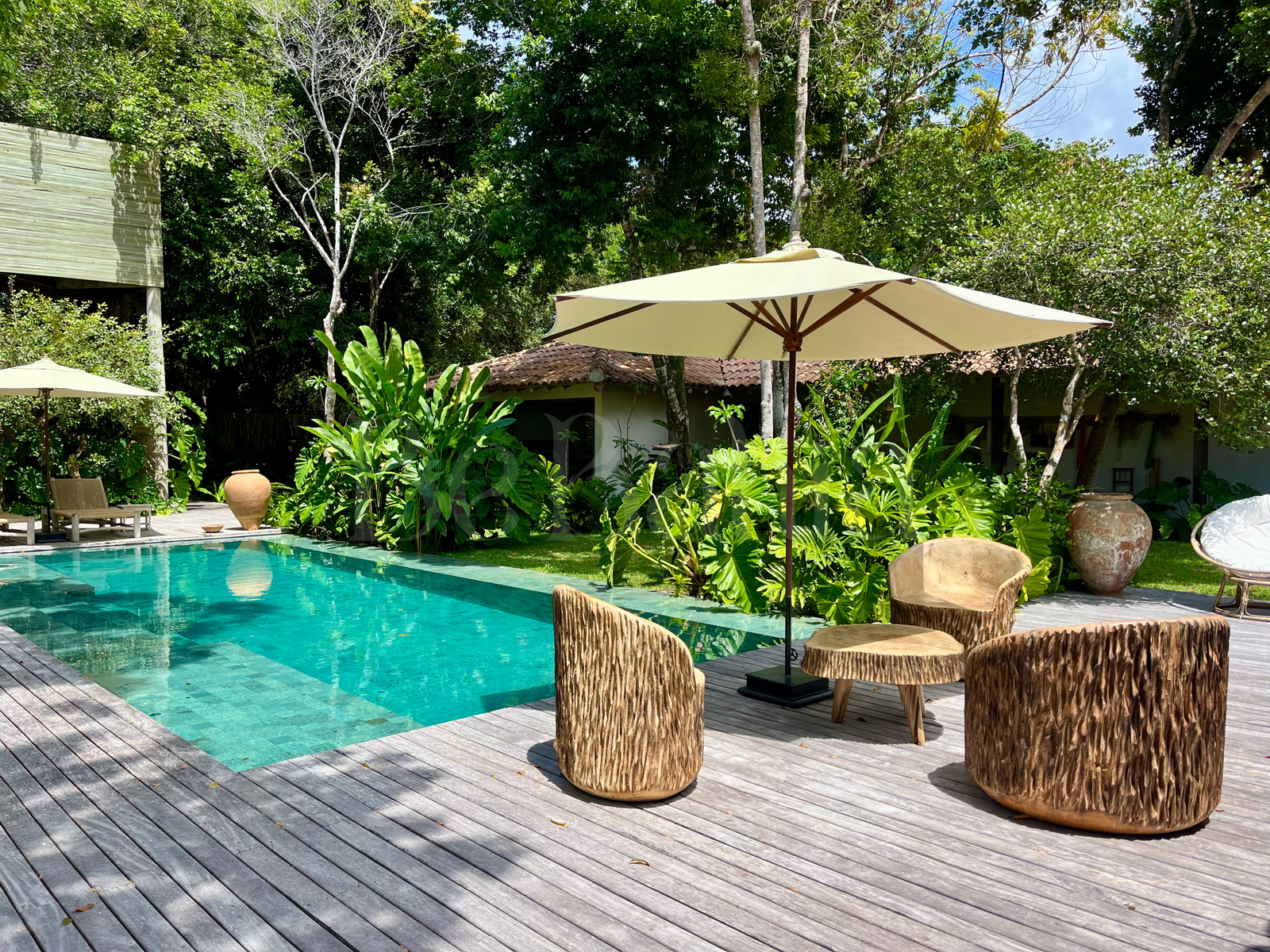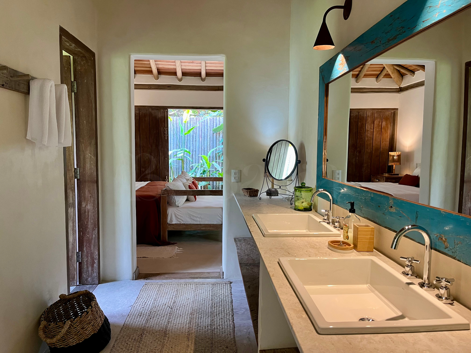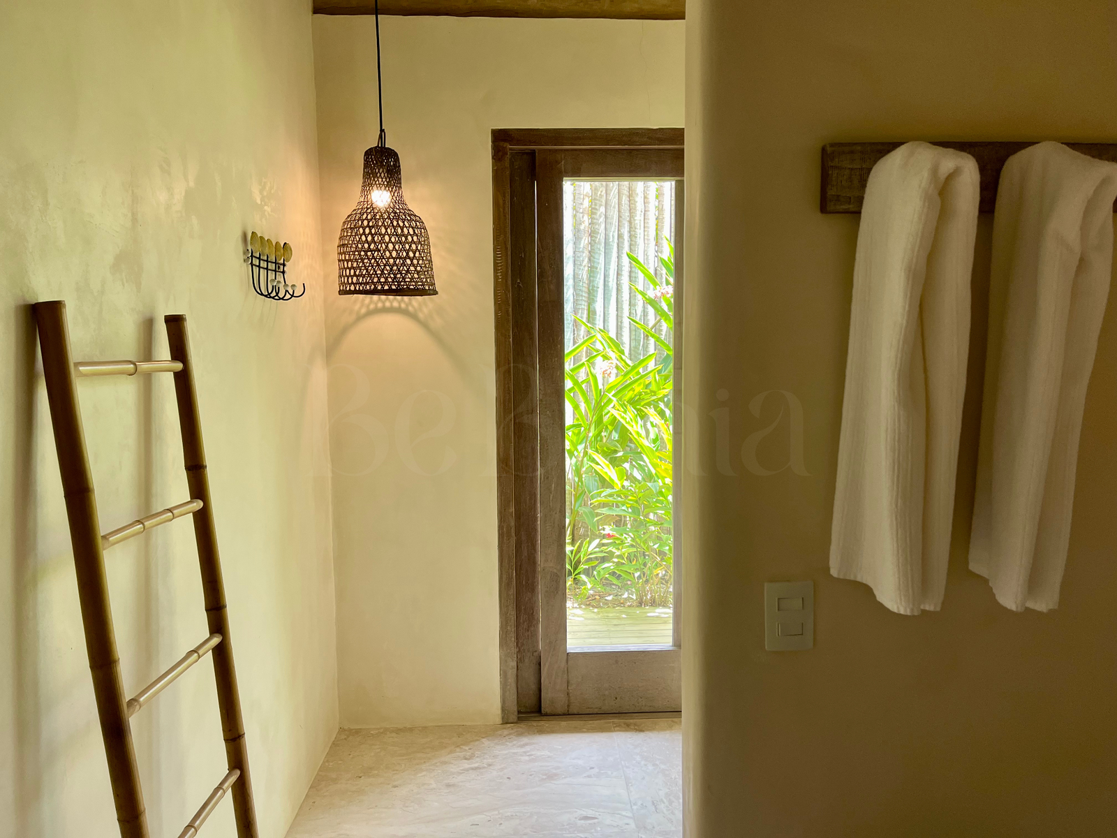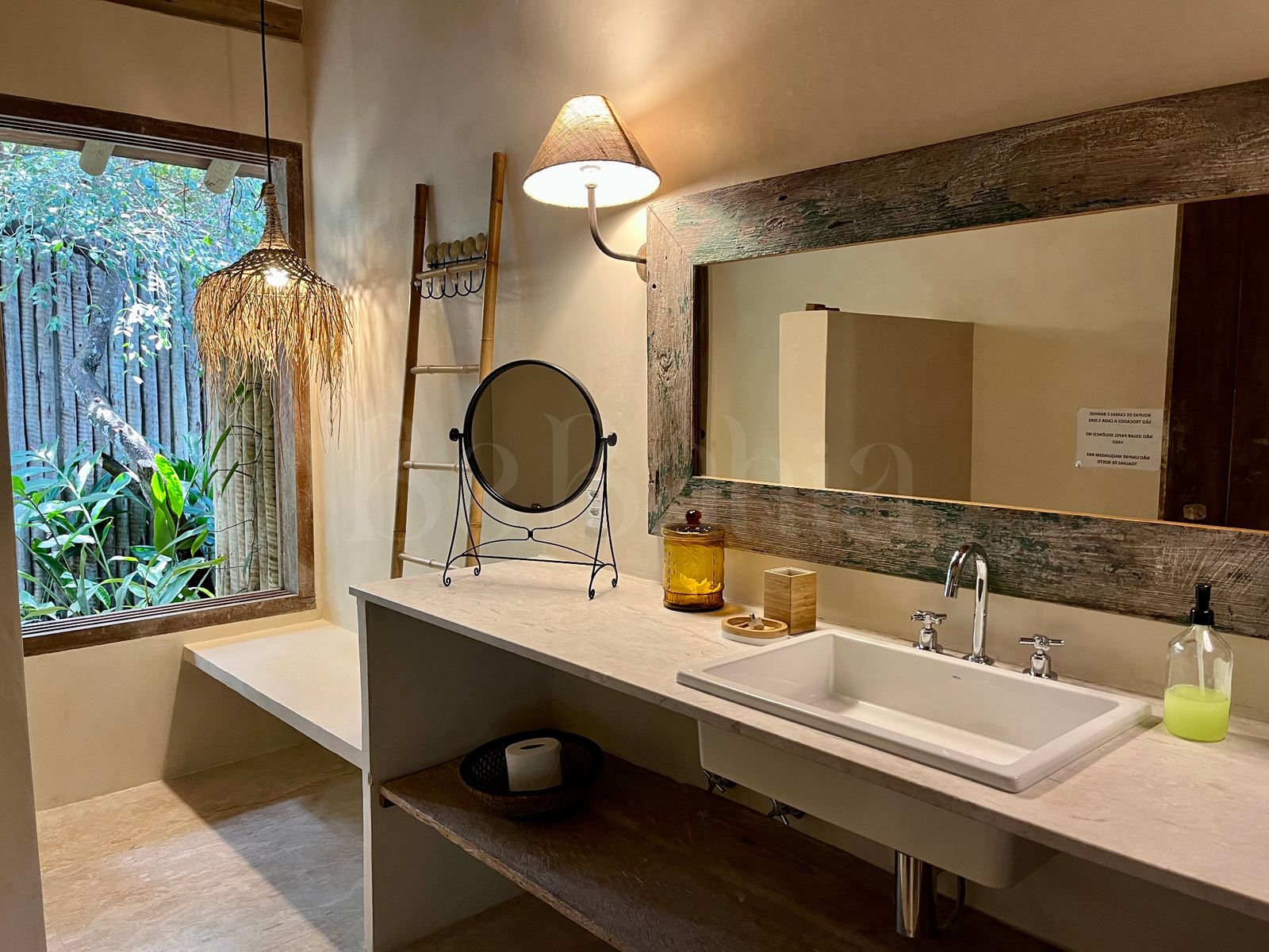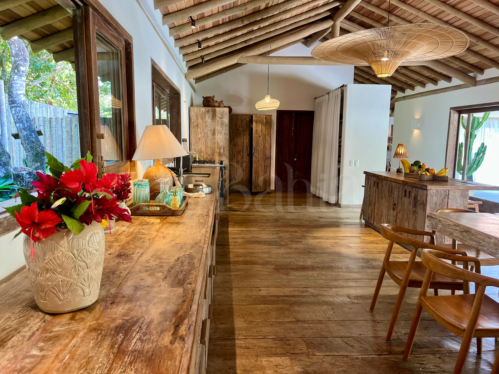 Bem-vindo à Casa Almesca, um refúgio onde cada detalhe celebra a brasilidade autêntica. Materiais locais, artesanato regional e soluções sustentáveis se unem para criar uma experiência única, em que o conforto e a sofisticação dialogam em perfeita harmonia com a natureza. A casa utiliza energia solar e madeira de reflorestamento e de reuso, refletindo um compromisso genuíno com o meio ambiente. O jardim, repleto de espécies nativas, convida à contemplação, enquanto o Axé da Bahia dá o tom de cada momento vivido aqui. Como diria Dorival Caymmi, “Tudo na Bahia faz a gente querer bem”.