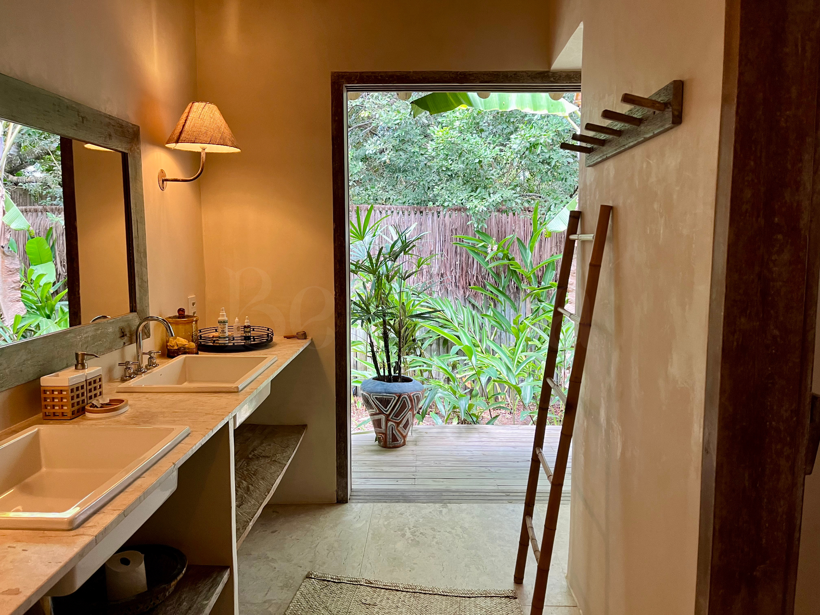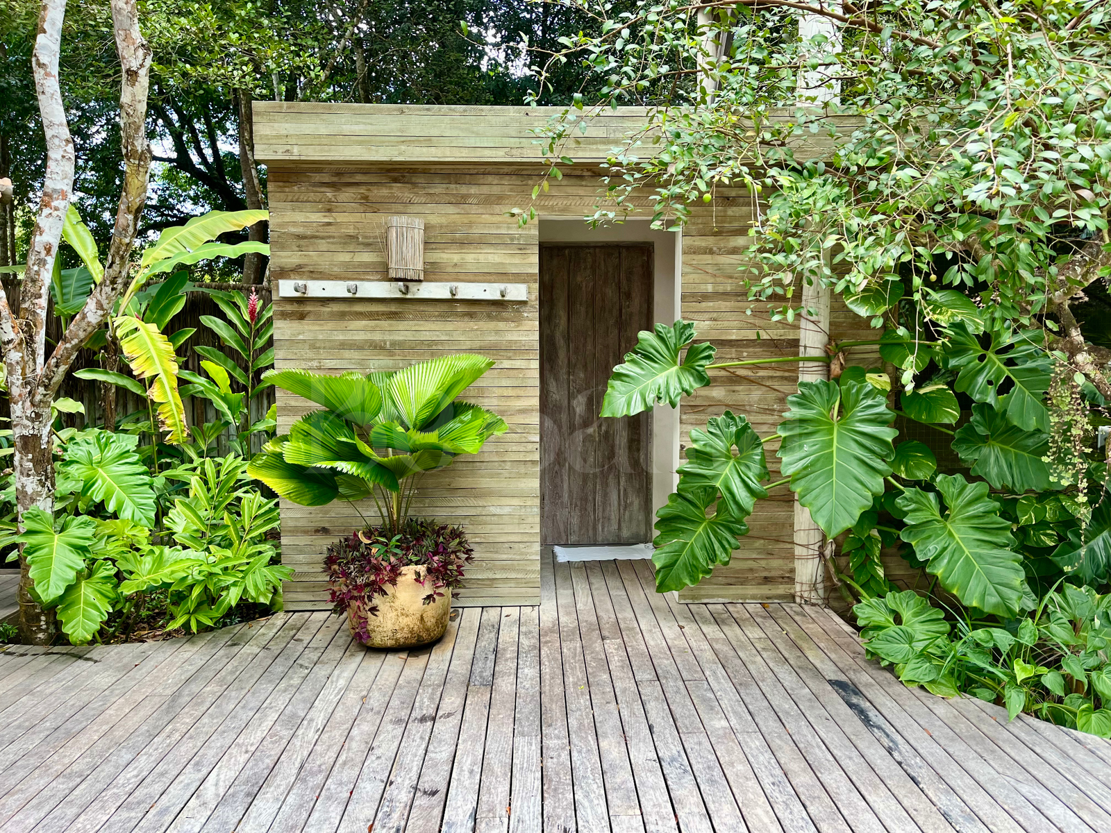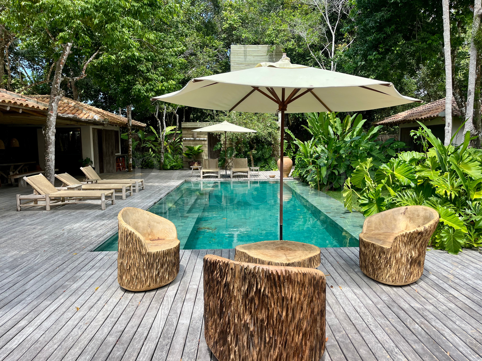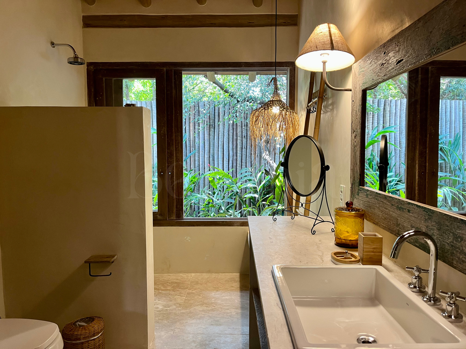 Bem-vindo à Casa Almesca, um refúgio onde cada detalhe celebra a brasilidade autêntica. Materiais locais, artesanato regional e soluções sustentáveis se unem para criar uma experiência única, em que o conforto e a sofisticação dialogam em perfeita harmonia com a natureza. A casa utiliza energia solar e madeira de reflorestamento e de reuso, refletindo um compromisso genuíno com o meio ambiente. O jardim, repleto de espécies nativas, convida à contemplação, enquanto o Axé da Bahia dá o tom de cada momento vivido aqui. Como diria Dorival Caymmi, “Tudo na Bahia faz a gente querer bem”.