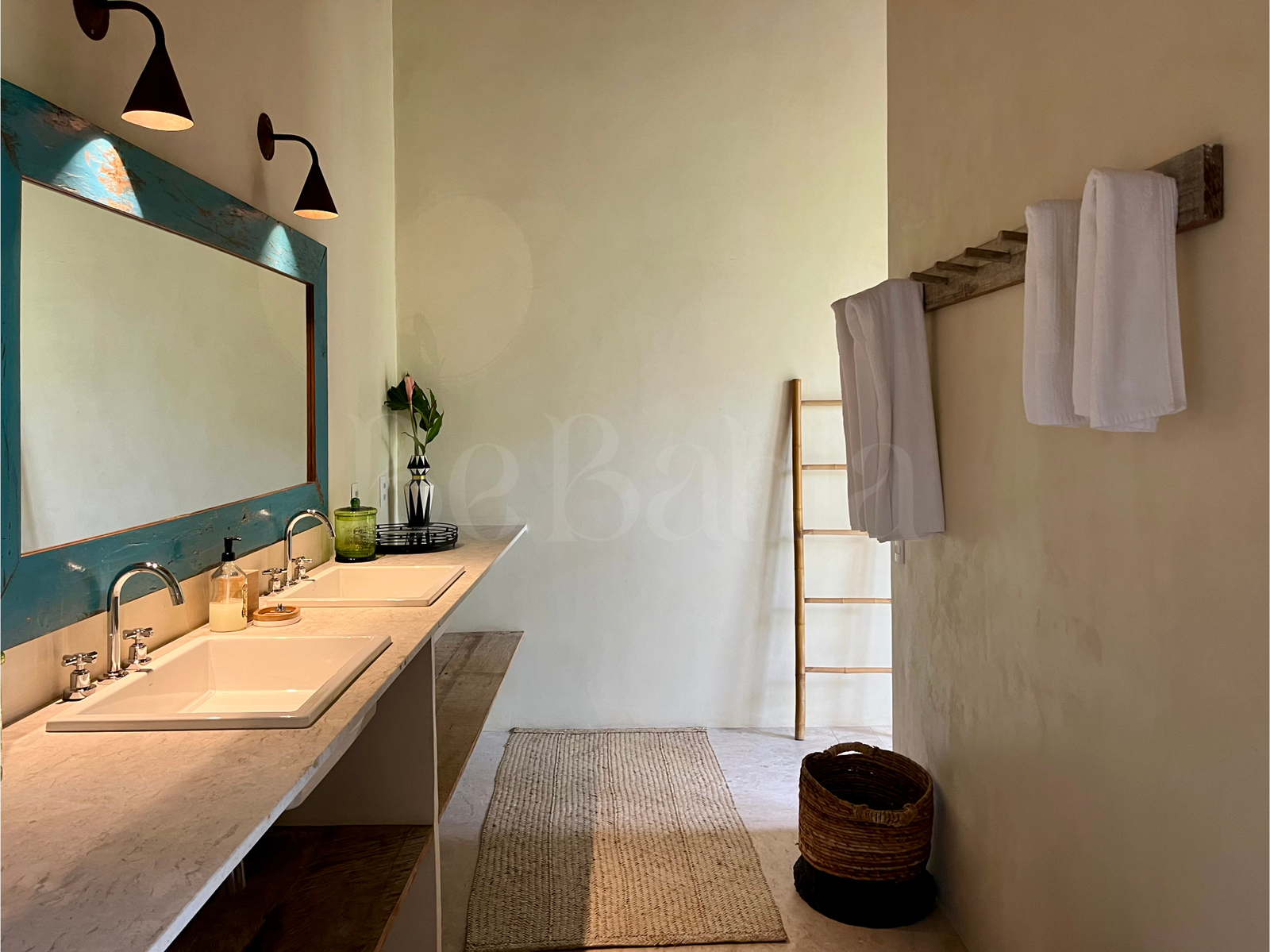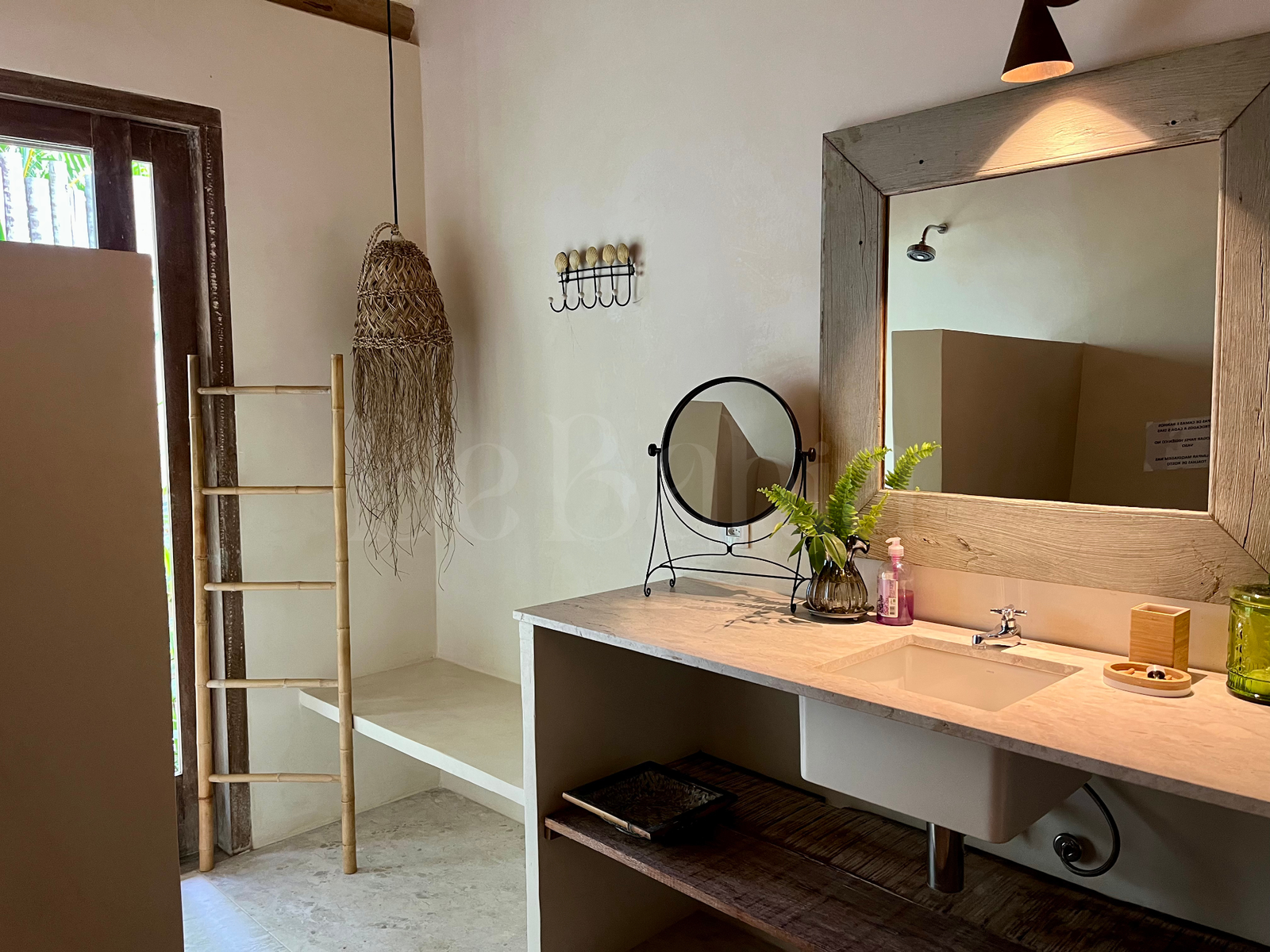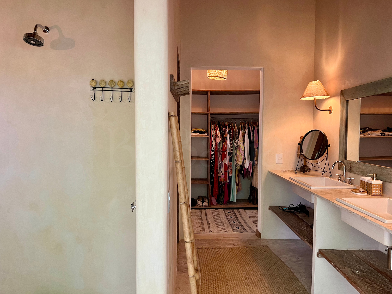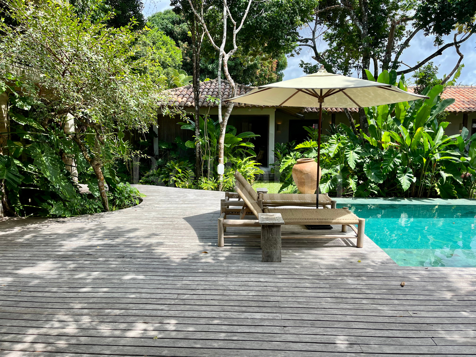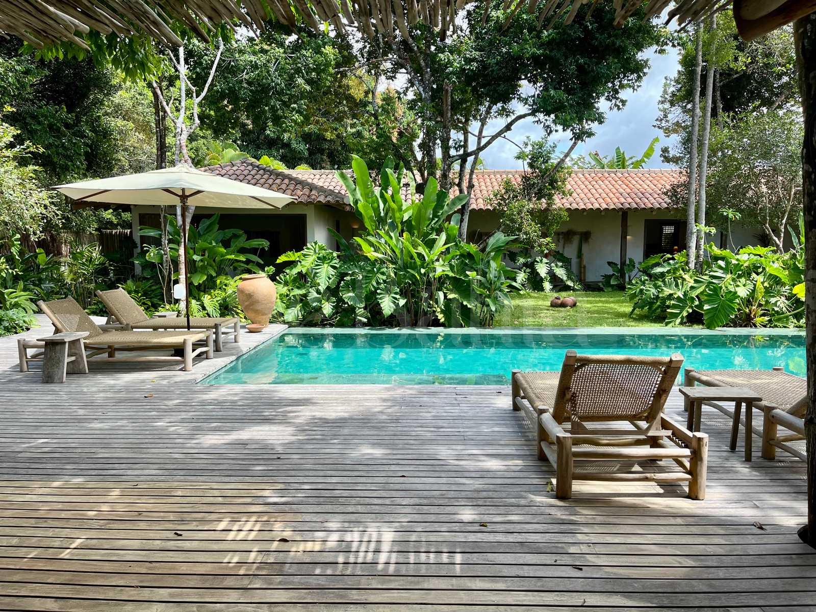Bem-vindo à Casa Almesca, um refúgio onde cada detalhe celebra a brasilidade autêntica. Materiais locais, artesanato regional e soluções sustentáveis se unem para criar uma experiência única, em que o conforto e a sofisticação dialogam em perfeita harmonia com a natureza. A casa utiliza energia solar e madeira de reflorestamento e de reuso, refletindo um compromisso genuíno com o meio ambiente. O jardim, repleto de espécies nativas, convida à contemplação, enquanto o Axé da Bahia dá o tom de cada momento vivido aqui. Como diria Dorival Caymmi, “Tudo na Bahia faz a gente querer bem”.