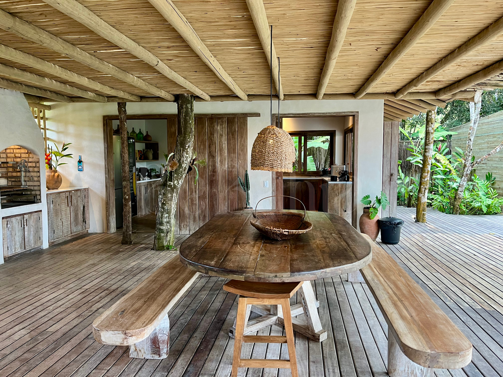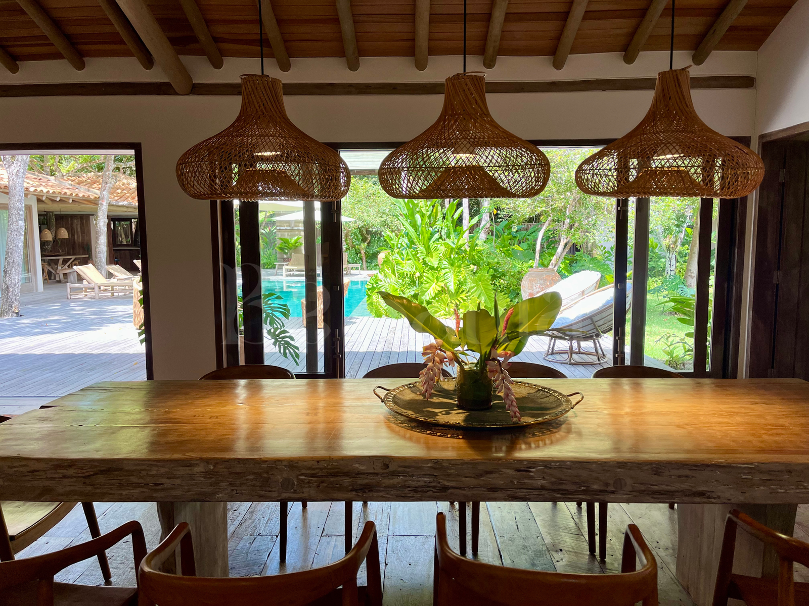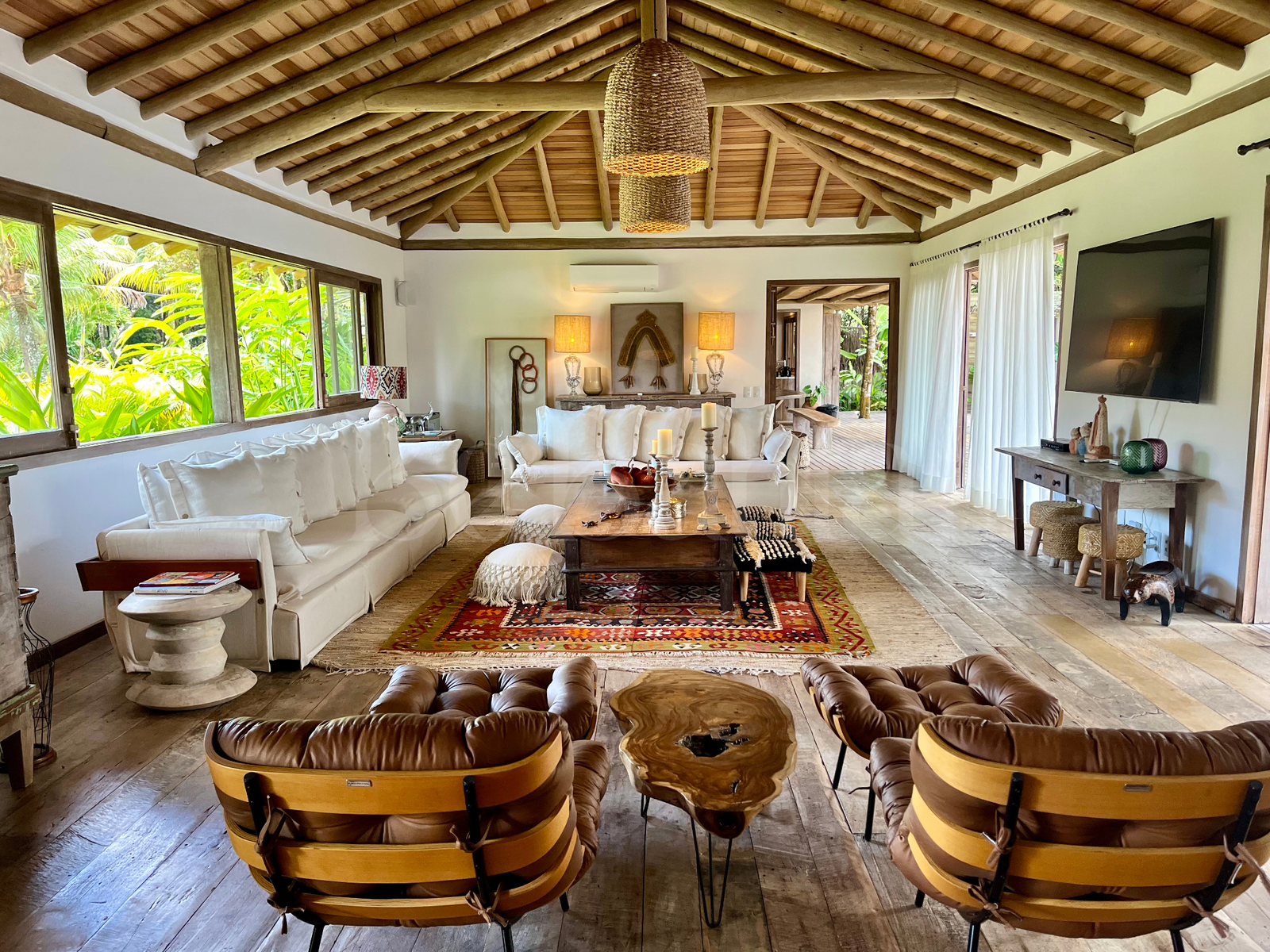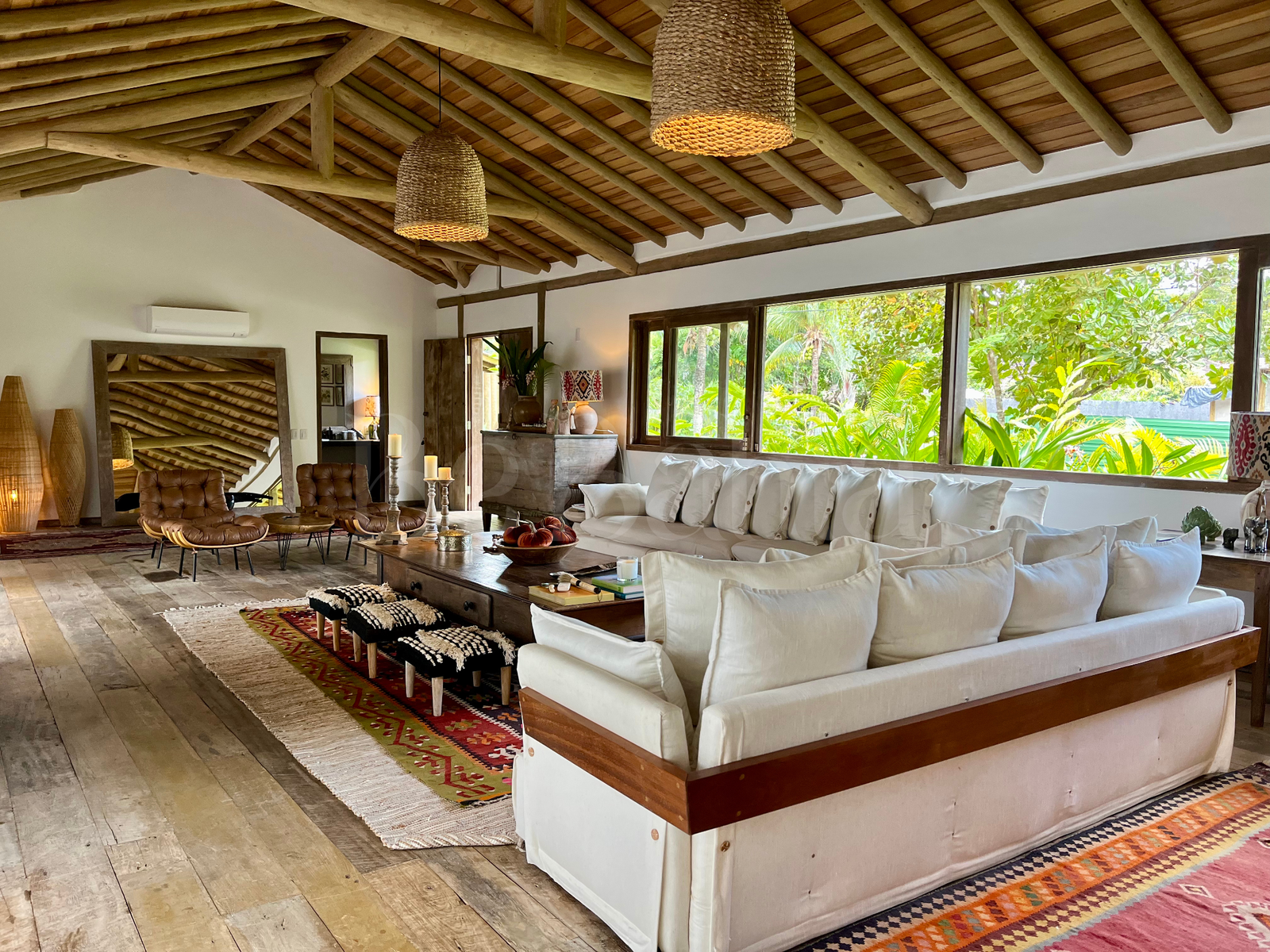 A Casa Almesca combina linhas arquitetônicas contemporâneas com o calor da estética baiana. Projetada para ser ampla e acolhedora, privilegia a integração dos espaços e o diálogo constante entre o interior e o exterior. A estrutura, marcada pelo uso de madeira e materiais regionais, reforça a sensação de pertencimento ao cenário natural de Trancoso, criando um lar que é ao mesmo tempo sofisticado e despojado.