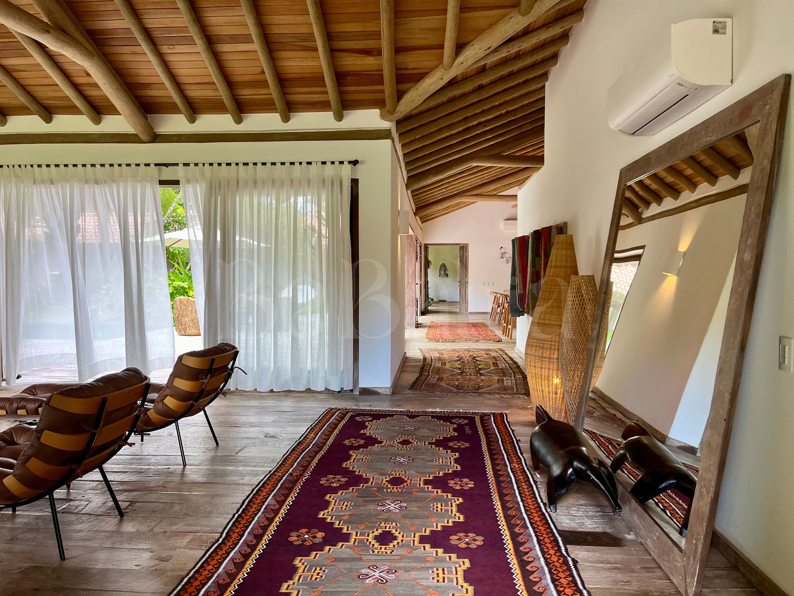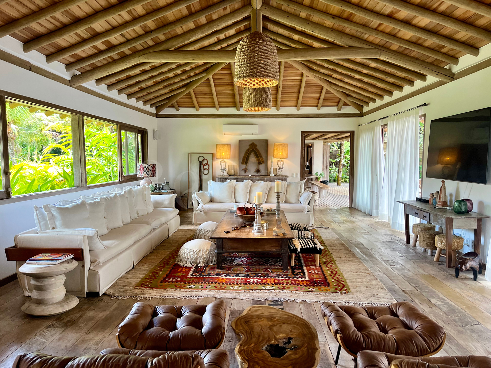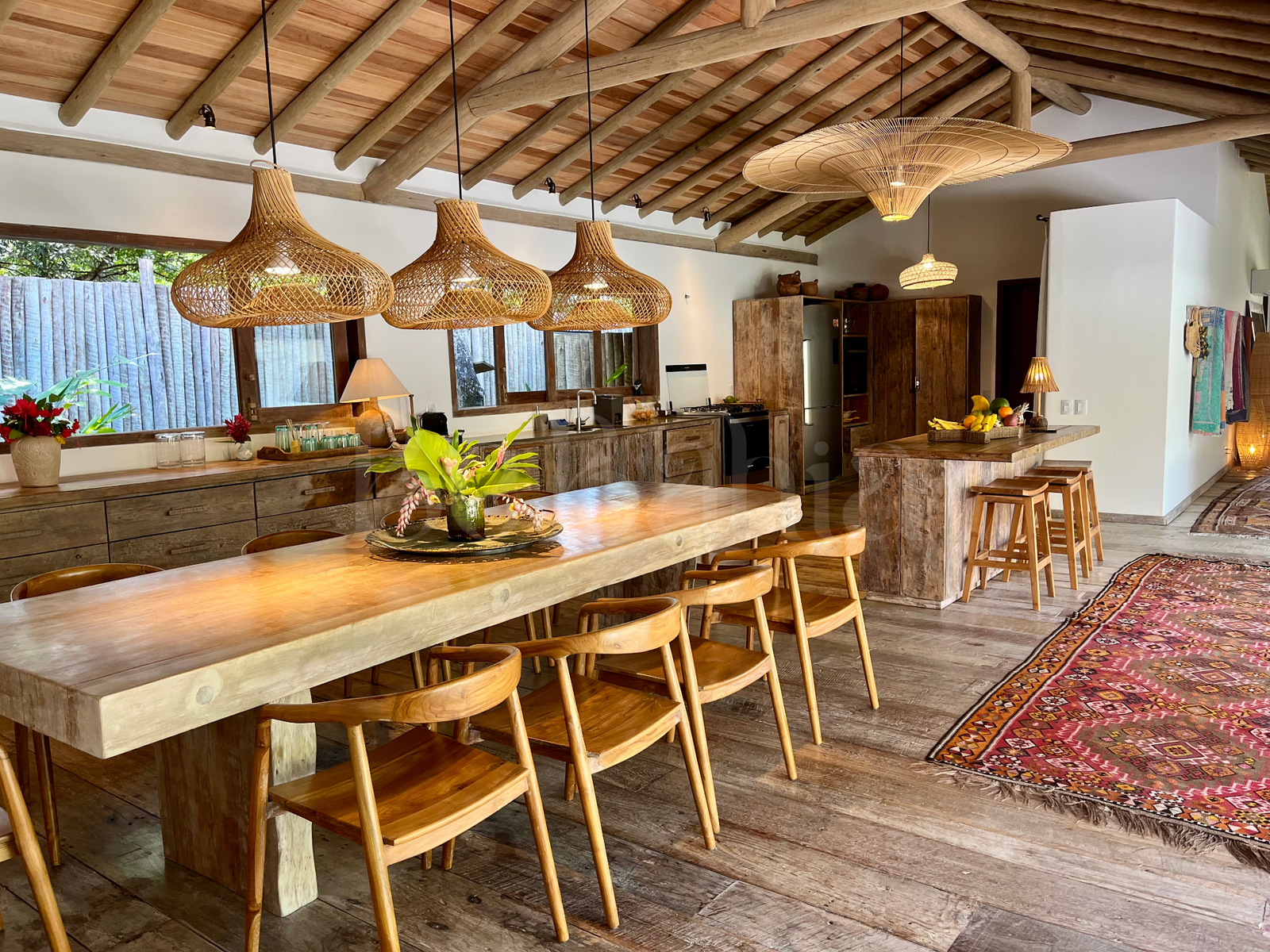 A Casa Almesca combina linhas arquitetônicas contemporâneas com o calor da estética baiana. Projetada para ser ampla e acolhedora, privilegia a integração dos espaços e o diálogo constante entre o interior e o exterior. A estrutura, marcada pelo uso de madeira e materiais regionais, reforça a sensação de pertencimento ao cenário natural de Trancoso, criando um lar que é ao mesmo tempo sofisticado e despojado.
