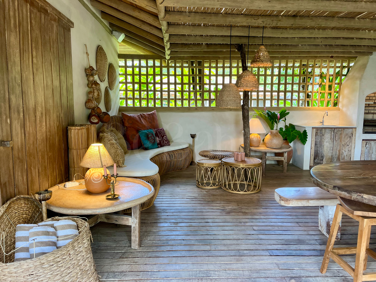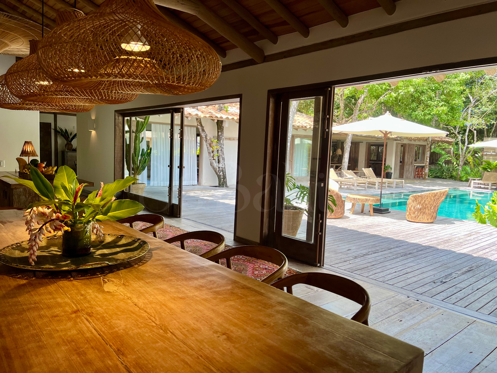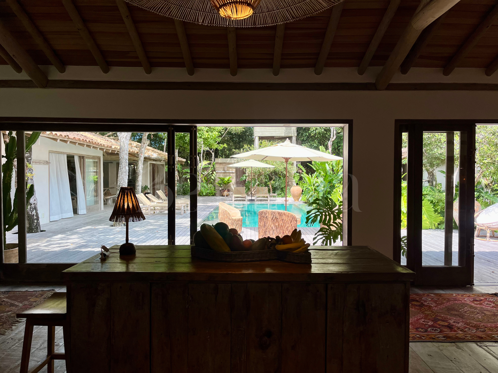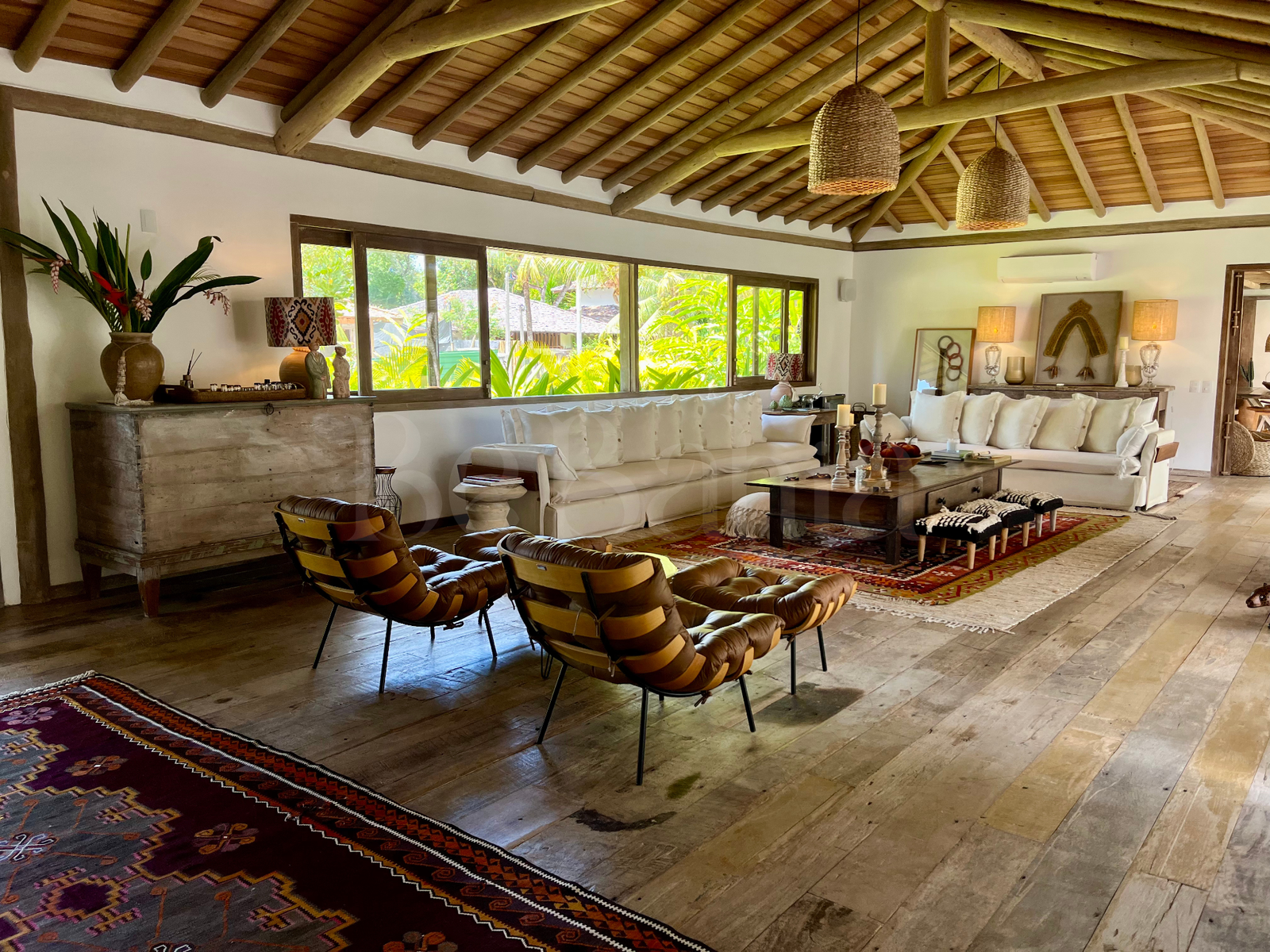 A Casa Almesca combina linhas arquitetônicas contemporâneas com o calor da estética baiana. Projetada para ser ampla e acolhedora, privilegia a integração dos espaços e o diálogo constante entre o interior e o exterior. A estrutura, marcada pelo uso de madeira e materiais regionais, reforça a sensação de pertencimento ao cenário natural de Trancoso, criando um lar que é ao mesmo tempo sofisticado e despojado.